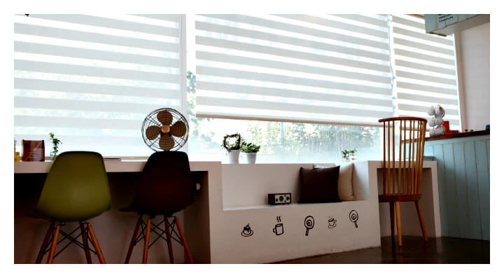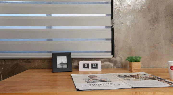Enjoy a full view and soft, diffused light, without compromising your privacy. Illusion Shade offer a variety of lighting options and control privacy, It gives you complete control over the environment inside colour coordinated panels overlap; In the closed position (overlap) that all incoming light is diffused, providing the ambient heat glow. When blades overlap opaque, light seeps into the room through the sheer sections of tissue.